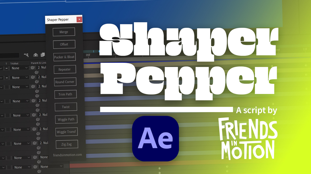 Pepper your layers with Merge, Offset, Pucker & Bloat, Repeater, Round Corner, Trim Path, Twist, Wiggle Path, Wiggle Transf and Zig Zag.